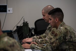 Oklahoma Air National Guard and Air National Guard Readiness Center leaders discuss shared objectives for coordination and alignment during Oklahoma’s “State of the State” visit at Joint Base Andrews, Md., July 22, 2025. Oklahoma Air National Guardsmen, representing two Air National Guard wings and
